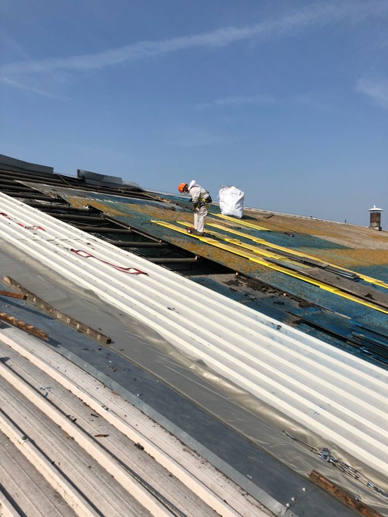 Smaltimento di circa mq 40.000 di copertura in eternit e rifacimento con pannelli in lamiera grecata. Cantiere in corso d’opera ed anche questo realizzato nel pieno rispetto delle normative vigenti in materia di sicurezza e bonifica. Non è semplice lavorare in copertura soprattutto quando si raggiungono le temperature delle ultime settimane, bravi ragazzi, tenete duro…